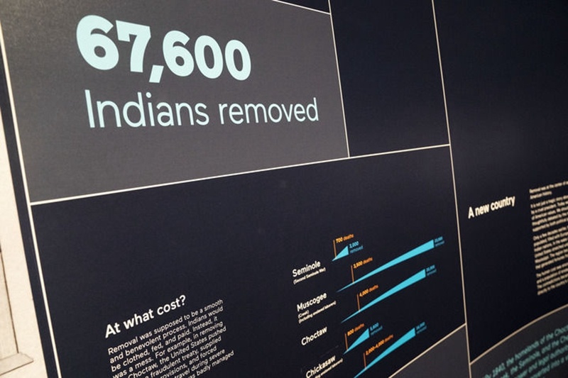 這是5月17日在美國華盛頓拍攝的印第安人國家博物館里展示的《印第安人遷移法》相關(guān)內(nèi)容。新華社記者劉杰攝