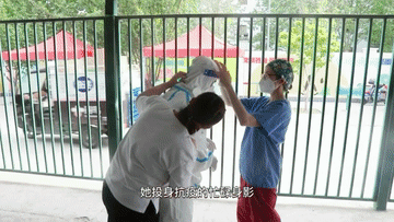 這位外籍志愿者謝麗(Sheri)發(fā)揮自己作為醫(yī)學(xué)志愿者的專業(yè)知識,幫助防疫人員穿戴防護(hù)裝備、做好消殺工作,還主動幫助社區(qū)里的外籍居民了解防疫政策、登記信息、講解注意事項,提高采樣效率。她非常細(xì)心,主動引導(dǎo)行動不便的人士,做好關(guān)懷與陪伴。