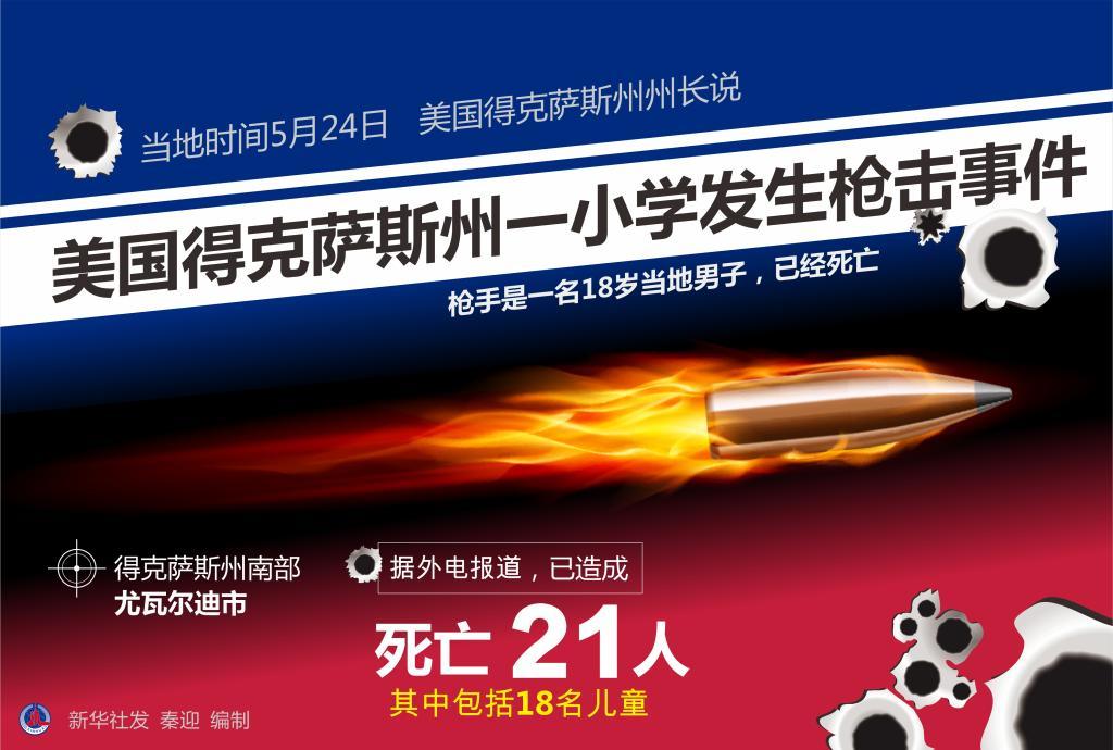 美國(guó)得克薩斯州州長(zhǎng)阿伯特24日在新聞發(fā)布會(huì)上說(shuō),槍手是一名18歲當(dāng)?shù)啬凶?,已?jīng)死亡。阿伯特表示,槍手很可能是被執(zhí)法人員擊斃的,事件目前在調(diào)查中。