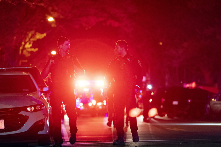 4月22日,在美國首都華盛頓西北部一處街區(qū),警察在槍擊事件現(xiàn)場工作。新華社記者劉杰攝