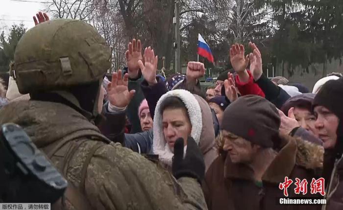 當(dāng)?shù)貢r間3月3日,烏克蘭哈爾科夫地區(qū),俄軍分發(fā)人道主義援助物資。