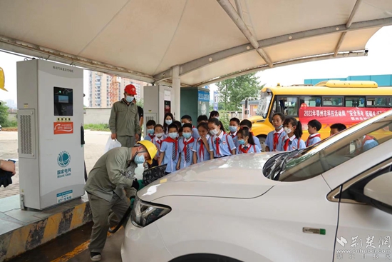 隨后,小朋友們來到國網(wǎng)葛山大道電動汽車充電站參觀學習。該充電站建設于2016年,是鄂州市城區(qū)第一個8樁標準直流充電站,極大方便了城區(qū)居民綠色低碳出行。充電站運維人員向小朋友們介紹了充電站的基本情況、電動汽車充電原理和綠色出行理念后,實景演示了如何給電動汽車充電以及如何給充電站消殺。并向小朋友們發(fā)放了安全用電手冊,科普了安全用電知識。