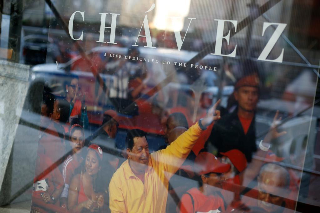 這是2019年1月25日在美國(guó)紐約拍攝的委內(nèi)瑞拉駐紐約總領(lǐng)事館張貼的印有前總統(tǒng)查韋斯的海報(bào)。委內(nèi)瑞拉總統(tǒng)馬杜羅2019年1月24日在電視講話中宣布即日起關(guān)閉委內(nèi)瑞拉駐美國(guó)所有使領(lǐng)館,并撤回所有在美外交人員。新華社記者李木子攝