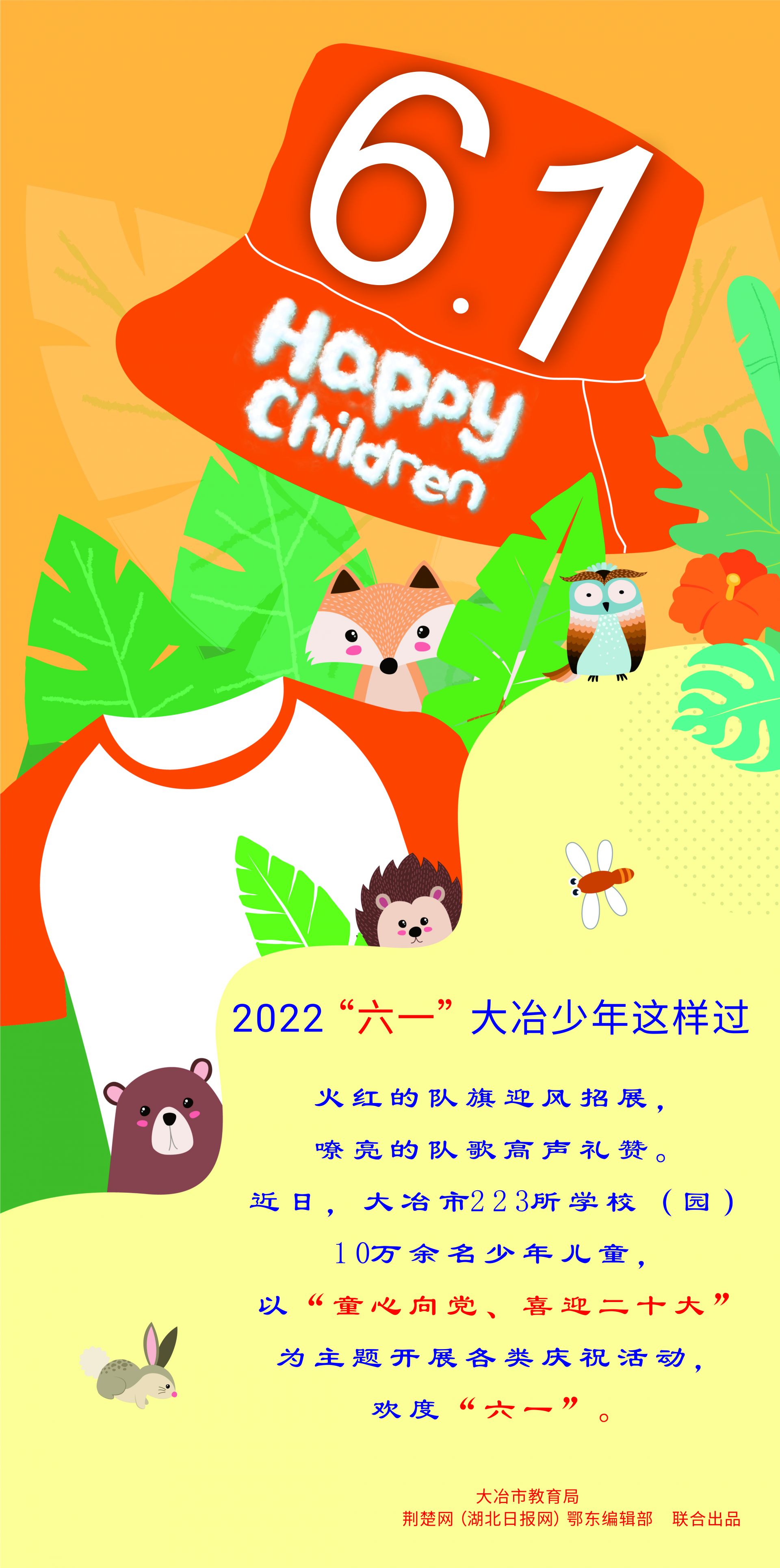 荊楚網(wǎng)(湖北日?qǐng)?bào)網(wǎng))訊(記者左乙辰 通訊員吳春海、王夢(mèng)蕾)在慶祝中國(guó)共青團(tuán)成立100周年之際,大冶市教育局在全市學(xué)校(園)開(kāi)展以“童心向黨 喜迎二十大”為主題的“六一”慶?;顒?dòng)。10萬(wàn)余名少年兒童,身著節(jié)日的盛裝,沉浸在歡樂(lè)的海洋里。