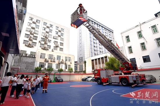 活動中,消防員帶領(lǐng)來自黃石市廣場路小學(xué)的40余名學(xué)生和老師參觀了各類消防車輛和器材裝備,詳細(xì)介紹了不同車輛、器材的功能和用途。