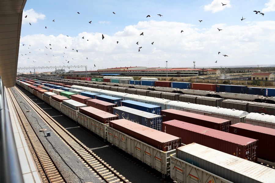 “連接國(guó)家,走向繁榮”——蒙內(nèi)鐵路列車(chē)上的標(biāo)語(yǔ)正成為現(xiàn)實(shí)。過(guò)去五年,蒙內(nèi)鐵路累計(jì)運(yùn)送集裝箱177.3萬(wàn)標(biāo)箱,目前日均開(kāi)行16列貨運(yùn)列車(chē),促進(jìn)了肯尼亞本國(guó)以及與其他東非國(guó)家的經(jīng)貿(mào)往來(lái)。