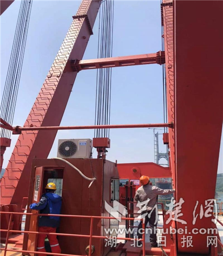 為力爭9月底實現(xiàn)通車,該工程項目一直在加班加點趕工期、搶進度。十堰分院緊貼企業(yè)需求,適時調整檢驗工作計劃,檢驗組于三度深入建設現(xiàn)場,對大橋北岸、南岸中跨鋼混結合段組合梁吊裝所采用的、額定起吊重量達290噸的4臺桅桿式起重機分別實施了首次檢驗,現(xiàn)場開展載荷480噸起重量的試驗,并主動開展期間安全巡回檢查,切實保障了組合梁吊裝作業(yè)的安全穩(wěn)定運行。