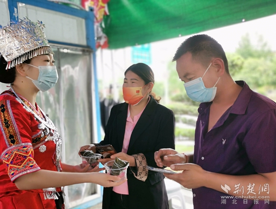 5月30日,杭瑞高速公路“瑤鄉(xiāng)雋妞”志愿者將一顆顆親手包裹著甜蜜、溫暖與真情的粽子,送到一直堅守在卡點執(zhí)勤檢查的防疫人員手中。嘗了一口粽子的卡點防疫工作人員樂呵呵道:“杭瑞高速瑤鄉(xiāng)雋妞送來的這些粽子,味道真不錯,有甜度,有溫度,太貼心了,也太感人了。”