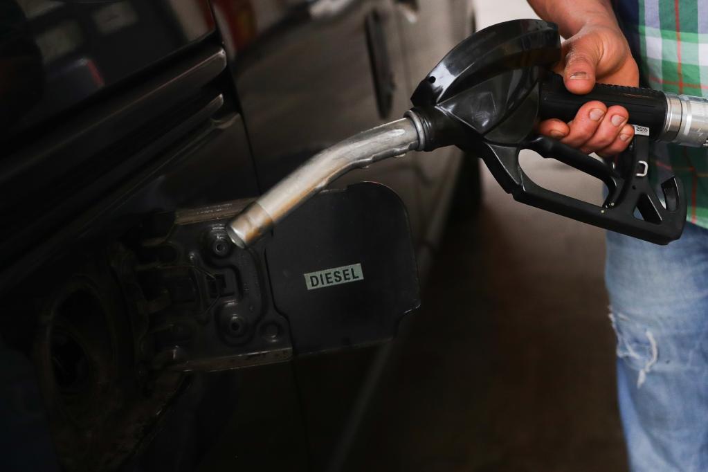2022年3月29日,一名男子在比利時(shí)布魯塞爾的一個(gè)加油站為車輛加油。新華社記者鄭煥松攝
