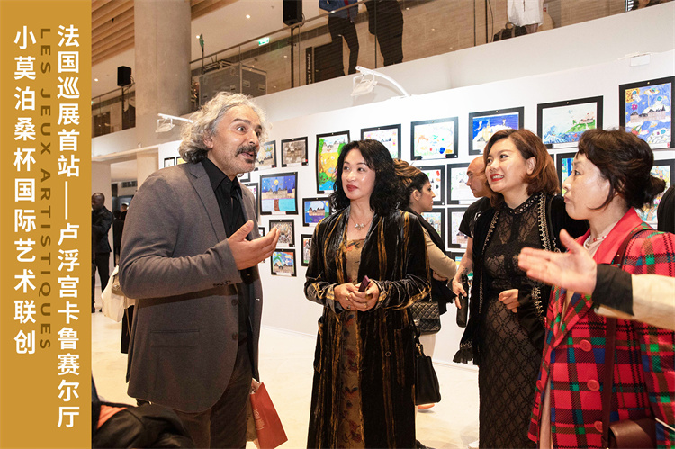 人民網(wǎng)巴黎6月7日電 (記者何蒨) 6月4日,由聯(lián)合國教科文組織協(xié)會世界聯(lián)合會和法中交流促進(jìn)會共同發(fā)起并主辦的“諾芒底1905·小莫泊桑兒童牛奶第一屆‘小莫泊桑杯’國際藝術(shù)聯(lián)創(chuàng)巡展(法國首站)”在巴黎盧浮宮卡魯塞爾廳舉辦開幕式。500多幅體現(xiàn)世界兒童豐富想象力的優(yōu)秀聯(lián)創(chuàng)作品與五位國際著名藝術(shù)家的作品一同與觀眾見面,中國駐法國大使盧沙野、聯(lián)合國教科文組織協(xié)會世界聯(lián)合會法國委員會主席阿爾迪歐瑪·斯利馬、法國教育部教育總督察長羅伯特·普羅斯佩里尼出席開幕式并致辭,出席活動的還有法中交流促進(jìn)會主席亞丁、法國藝術(shù)家協(xié)會主席雷米·艾融、意大利國寶女演員莫妮卡·貝魯奇、中國著名舞蹈家及主持人金星等,來自中、法、英、瑞典等多個國家的兒童及家庭也親臨現(xiàn)場,共同見證這場藝術(shù)盛宴。