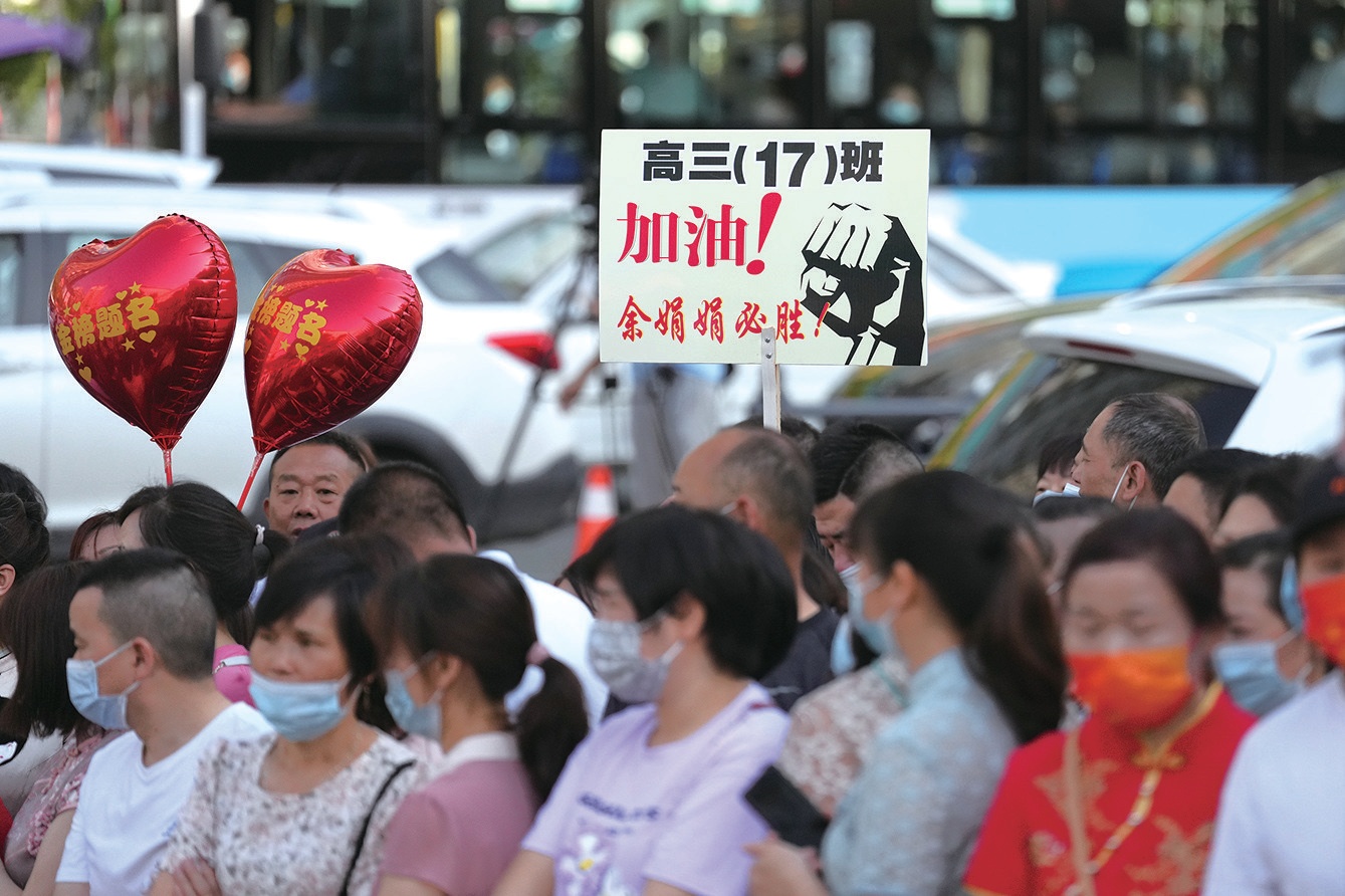 “金榜題名”的紅氣球、“必勝”的標語牌、寓意“旗開得勝”的旗袍,送考的家長們把濃濃的愛、殷切的期望化做各種加油鼓勁。高考,不僅是考生一個人的事,更是全家人共同的目標。