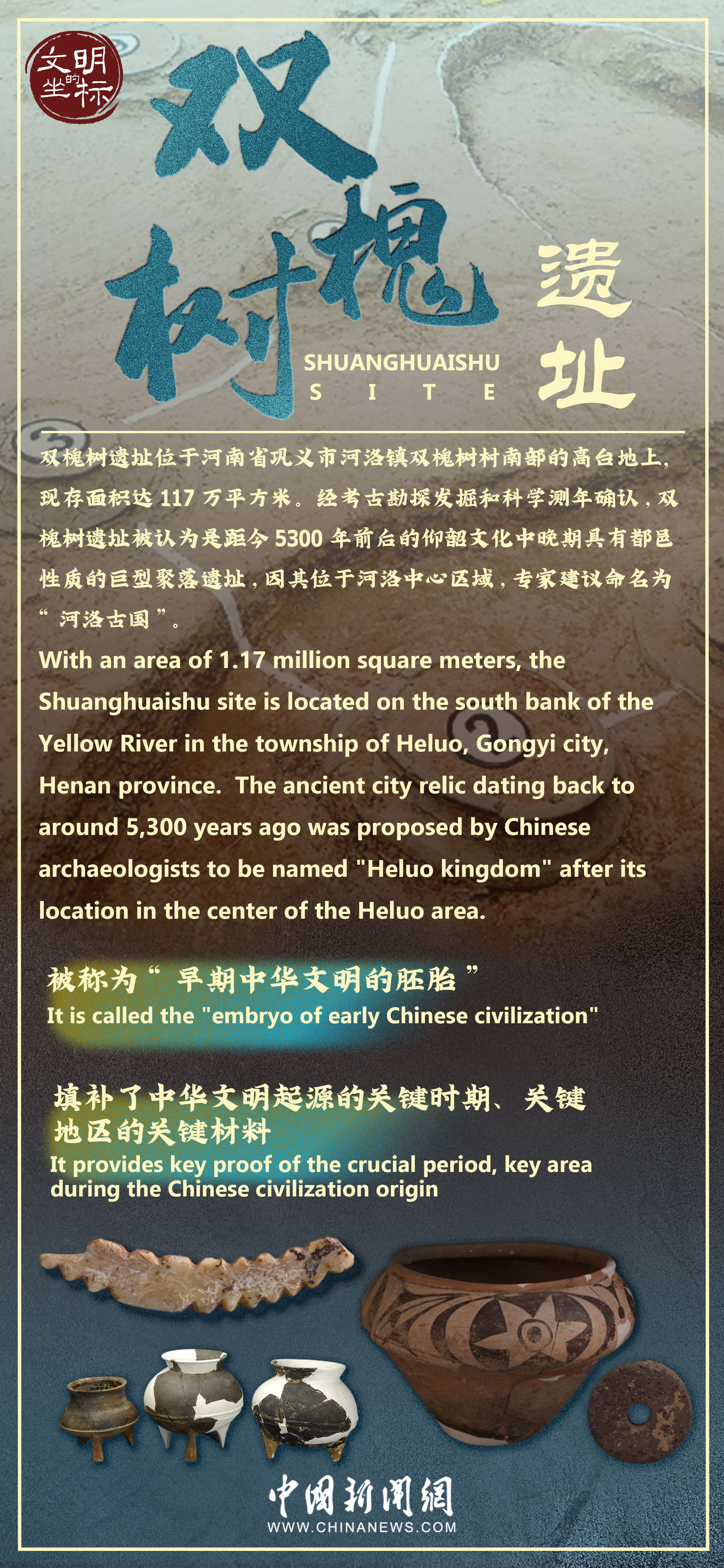 中國是世界上最早栽桑、養(yǎng)蠶、繅絲、織綢的國家,中國的絲綢文明為人類文明做出了杰出貢獻。河南鞏義雙槐樹遺址出土的牙雕蠶,距今已有5000多年,是中國目前發(fā)現(xiàn)的時代最早的蠶雕藝術品。它與青臺遺址等周邊同時期遺址出土的迄今最早絲綢實物一起,實證了5000多年前黃河中游地區(qū)的先民們已經(jīng)會養(yǎng)蠶繅絲。此外,在遺址還發(fā)現(xiàn)了用9個陶罐擺放成的“北斗九星”遺跡,表明當時人們已經(jīng)具有相對成熟的“觀象授時觀”,用以觀察節(jié)氣、指導農(nóng)時。一只蠶、九顆星,農(nóng)桑文明和天文禮制,呈現(xiàn)出了雙槐樹遺址不同的文明切面。走進鞏義雙槐樹遺址,尋找 “最早中國”燦爛文化的更多密碼。(牛爺工作室出品)