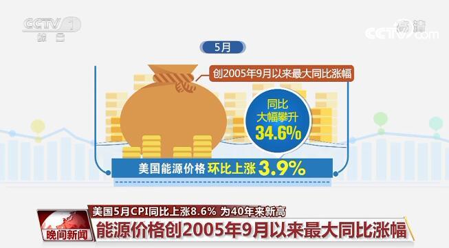 央視網(wǎng)消息:美國(guó)勞工部10日公布的數(shù)據(jù)顯示,5月美國(guó)消費(fèi)者價(jià)格指數(shù)(CPI)環(huán)比上漲1%,同比上漲8.6%,同比漲幅創(chuàng)1981年12月以來最大值。