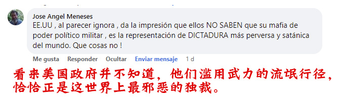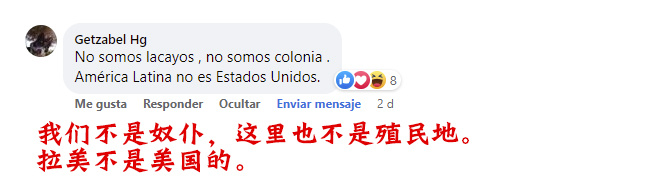 在眾多拉美網(wǎng)友看來,美國(guó)一方面把拉美視為自己的“后院”,肆意掠奪大量資源和財(cái)富,一方面又肆無忌憚地將自己的意愿強(qiáng)加給拉美國(guó)家,既虛偽又霸道。而在美國(guó)利益面前,那些被成天掛在嘴邊的“民主”“自由”等價(jià)值觀,根本不值一提,棄之如敝屣。