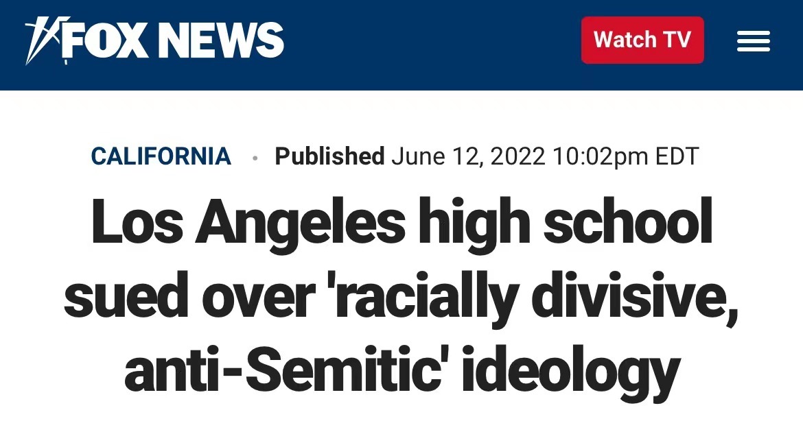中國(guó)日?qǐng)?bào)網(wǎng)6月14日電 據(jù)??怂剐侣劸W(wǎng)消息,近日洛杉磯地區(qū)一所私立學(xué)校遭到被該校開除的一位學(xué)生的父親的起訴,稱該校將猶太人視為“壓制者”,并在一種“種族分裂、反猶太主義”的意識(shí)形態(tài)下運(yùn)營(yíng)。艾森伯格起訴該學(xué)校違反了《安魯民權(quán)法案》、違反合同、故意造成情緒困擾和其他索賠。