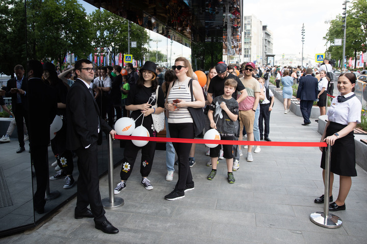 6月12日,人們在俄羅斯首都莫斯科普希金廣場的“只有美味”連鎖餐廳外排隊等待用餐。新華社記者白雪騏攝