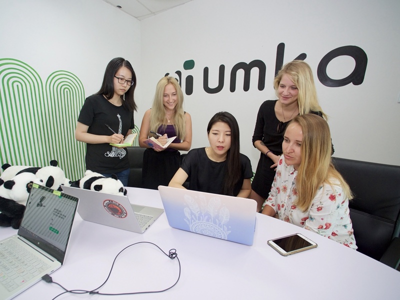 ↑2017年8月18日,廈門旺集科技電商平臺UMKA中國區(qū)副總裁張曉燕(中)與中俄兩國員工一起探討業(yè)務。優(yōu)質(zhì)的商品,穩(wěn)定快速的物流,以及愉快的網(wǎng)絡購物體驗,讓UMKA成為俄羅斯最受歡迎的網(wǎng)購平臺之一。新華社記者 姜克紅 攝