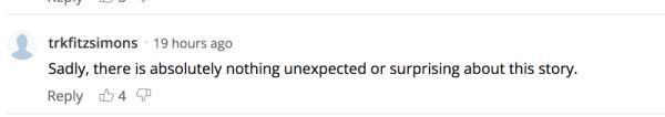 網(wǎng)友trkfitzsimons:很遺憾,看到這樣的新聞一點(diǎn)也不意外和驚訝。