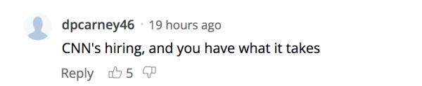 網(wǎng)友dpcarney46:CNN(美國有線電視新聞網(wǎng))正在招聘呢,你去太合適了。