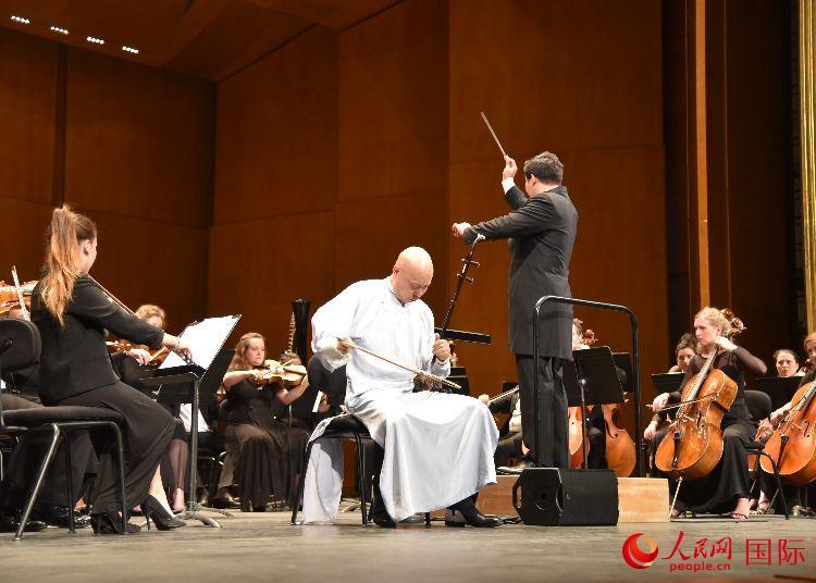 | 旅法二胡演奏家果敢與法國科隆樂團聯(lián)袂獻藝。人民網(wǎng)記者 劉玲玲攝 |