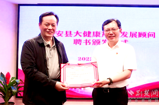 紅安縣委副書記、縣長胡廣為仝小林院士頒發(fā)聘書。通訊員 供圖