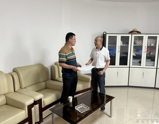 浠水縣住建局工作專班到浠水縣長江投資開發(fā)有限公司送發(fā)《建筑工程施工許可證》。通訊員 供圖