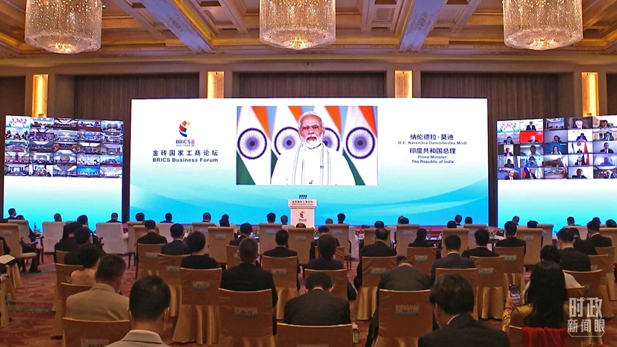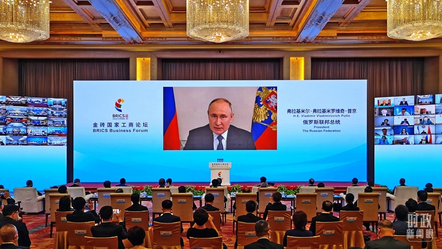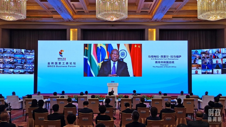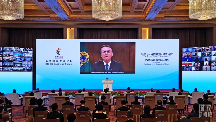 時(shí)隔五年,中國(guó)再次作為主席國(guó)主辦金磚會(huì)晤。今年金磚國(guó)家工商論壇以線上線下相結(jié)合的方式舉行。金磚五國(guó)領(lǐng)導(dǎo)人齊聚當(dāng)晚的論壇開(kāi)幕式,南非總統(tǒng)拉馬福薩、巴西總統(tǒng)博索納羅、俄羅斯總統(tǒng)普京、印度總理莫迪也以視頻方式出席并致辭。