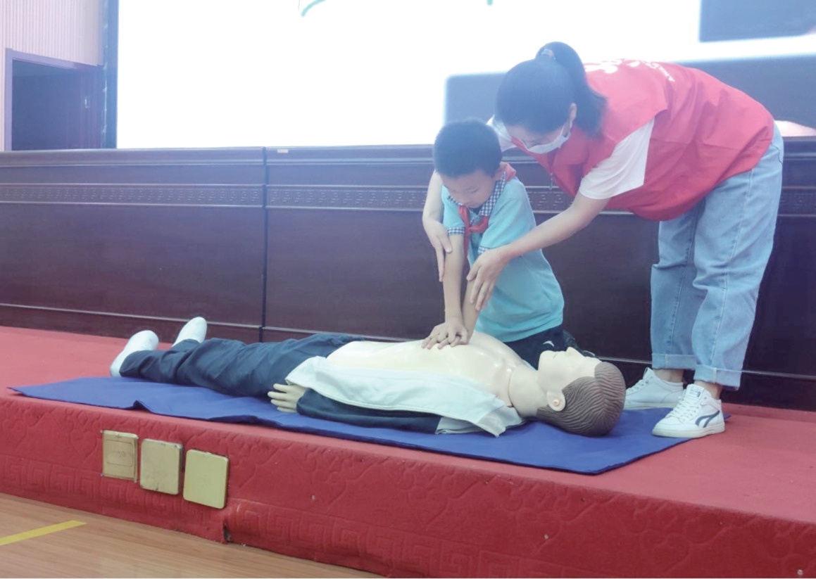 活動(dòng)現(xiàn)場(chǎng),杜成芬還為大家演示了心肺復(fù)蘇術(shù)和海姆立克急救法,學(xué)生們?cè)诶蠋煹闹笇?dǎo)下認(rèn)真學(xué)習(xí)演練。