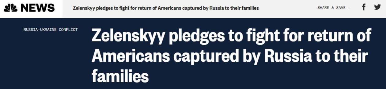 據(jù)報道,澤連斯基在接受NBC采訪時談及日前被俘的美國雇傭兵說:“我能說什么呢?他們是英雄,對我來說,他們和烏克蘭人一樣,因為他們奉獻了所擁有的最重要的東西:他們的生命?!盢BC補充稱,澤連斯基這里不是在暗示這些人已經(jīng)被殺。