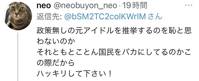 有人批評(píng)稱:“讓沒有政策思想的前偶像成為候選人,(自民黨)不覺得羞恥嗎?說清楚,是不是在把日本國民當(dāng)傻瓜耍?”
