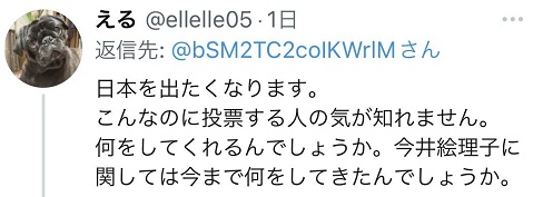 有網(wǎng)民直接說:“我想離開日本。真不知道給這種人投票的人怎么想的,她們能做些什么?今川繪里子當(dāng)選議員后干了什么實(shí)事嗎?”