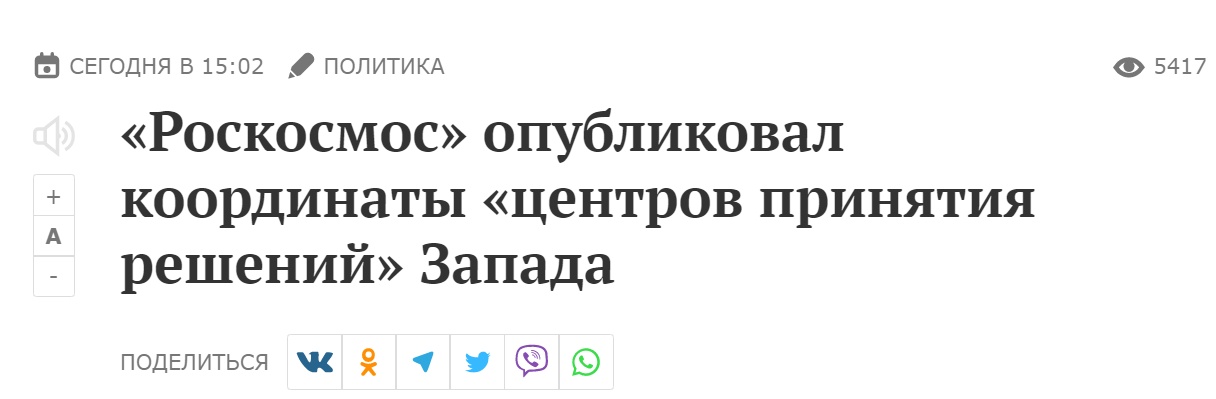 俄羅斯《莫斯科共青團(tuán)員報(bào)》:俄國家航天集團(tuán)公司發(fā)布西方?jīng)Q策中心的坐標(biāo)
