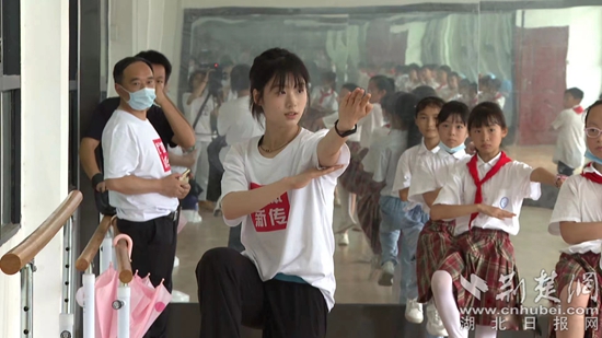 同時,武漢體育學(xué)院新聞傳播學(xué)院暑期社會實踐隊在浠水縣開展了“探尋體育初心·助力鄉(xiāng)村振興” 為主題的“三下鄉(xiāng)”社會實踐活動。在縣實驗小學(xué)內(nèi),曾榮獲全國青運(yùn)會武術(shù)套路比賽冠軍的武體學(xué)子連志蘋帶領(lǐng)學(xué)生練習(xí)武術(shù),讓孩子們近距離感受體育的魅力和運(yùn)動的快樂。