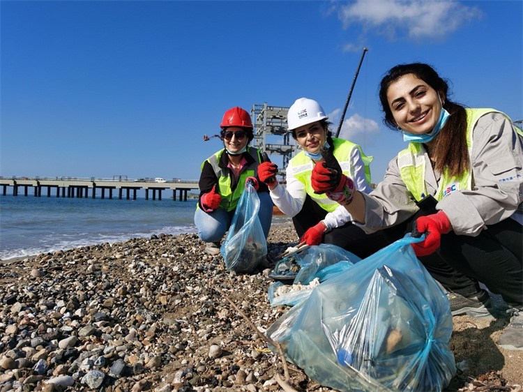項目所在地位于地中海東北角的伊斯肯德倫海灣,是瀕危物種綠海龜及易危物種蠵龜?shù)漠a(chǎn)卵繁殖區(qū)。當(dāng)?shù)卮迕褚欢葥?dān)心電廠建設(shè)影響海龜生存。但項目員工很快便打消了他們的顧慮,搭建橫跨沙灘的棧橋、減少廠區(qū)噪音污染,項目部從設(shè)施保障到人為控制,都在為“海龜寶寶”營造一個安靜舒適的家園。每年“世界環(huán)境日”,大家都會自發(fā)組織到海龜產(chǎn)卵區(qū)清理垃圾。功夫不負有心人,2021年海龜保護專家在1.5公里的海岸線上發(fā)現(xiàn)51個海龜巢穴,比2019年增加9個,按每個巢穴20到30個海龜卵計算,2021年至少增加200多個海龜寶寶。