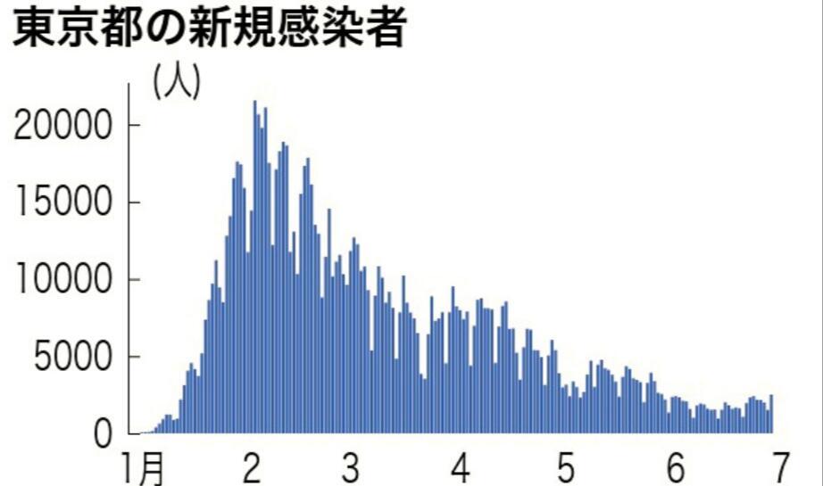 東京都近期的新增確診病例數(shù)變化趨勢圖。(圖片來源:《朝日新聞》)