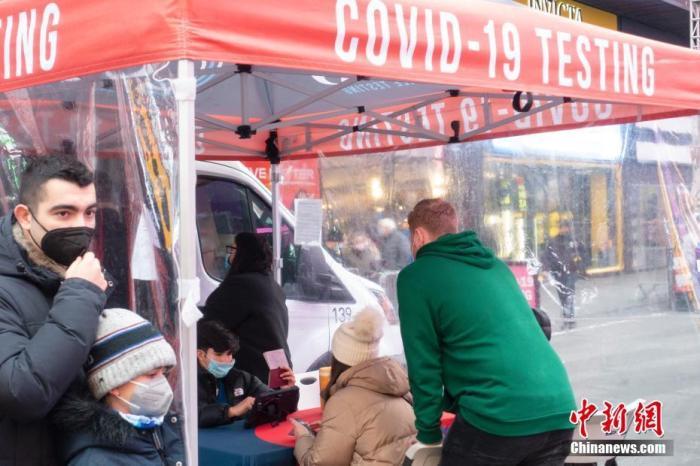 資料圖:美國紐約,民眾在時報廣場的一處新冠病毒檢測點登記檢測。 中新社記者 王帆 攝