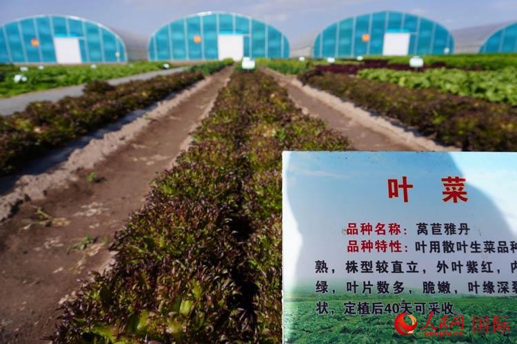 | 姚磨現(xiàn)代農(nóng)業(yè)示范基地正在實(shí)驗(yàn)種植的萵苣雅丹葉菜。人民網(wǎng)記者 何蒨攝 |