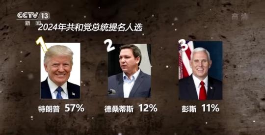 哈佛大學(xué)美國(guó)政治研究中心與哈里斯民調(diào)為美國(guó)《國(guó)會(huì)山報(bào)》進(jìn)行的一項(xiàng)新調(diào)查顯示,截至目前,在2024年共和黨總統(tǒng)提名人的8名潛在人選中,特朗普以57%的支持率穩(wěn)居第一,佛羅里達(dá)州州長(zhǎng)德桑蒂斯和前副總統(tǒng)彭斯分別以12%和11%的支持率位居第二和第三。