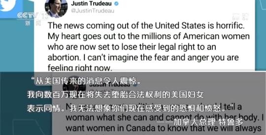 加拿大總理特魯多表示:“從美國(guó)傳來(lái)的消息令人震驚。我向數(shù)百萬(wàn)現(xiàn)在將失去墮胎合法權(quán)利的美國(guó)婦女表示同情。我無(wú)法想象你現(xiàn)在感受到的恐懼和憤怒。”