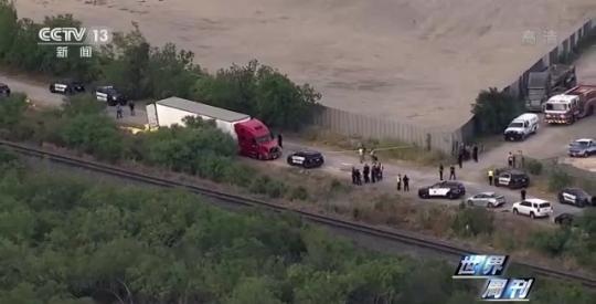 據(jù)美國(guó)全國(guó)廣播公司報(bào)道,6月27日下午5時(shí)50分左右,在得克薩斯州圣安東尼奧南郊的鐵軌旁邊,一名作業(yè)工人聽到一輛卡車集裝箱的內(nèi)部傳出微弱的呼救聲,隨后報(bào)警。警方趕到現(xiàn)場(chǎng)打開卡車貨箱門時(shí),發(fā)現(xiàn)“成堆的尸體”。
