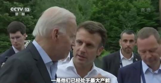 法國總統(tǒng) 馬克龍:總統(tǒng)先生,不好意思抱歉打斷你們。我剛和阿聯(lián)酋總統(tǒng)通了電話,要求他們提高產量。他告訴我兩件事,一是他們已經(jīng)處于最大產能;二是他告訴我沙特可以增加一點,每天大約(增加)15萬桶,或者再多一點,但他們產能也幾乎接近上限了。