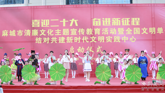 荊楚網(wǎng)(湖北日報(bào)網(wǎng))訊(通訊員謝靖)“濯濯清漣,亭亭清蓮,一品清廉,愛蓮,更贊廉?!?月29日,在麻城市清廉文化宣傳教育活動(dòng)暨全國文明單位結(jié)對共建啟動(dòng)儀式上,麻城市實(shí)驗(yàn)二小的情景劇《一品清廉》傳來聲聲清脆的倡廉之聲,贏得現(xiàn)場觀眾陣陣掌聲。