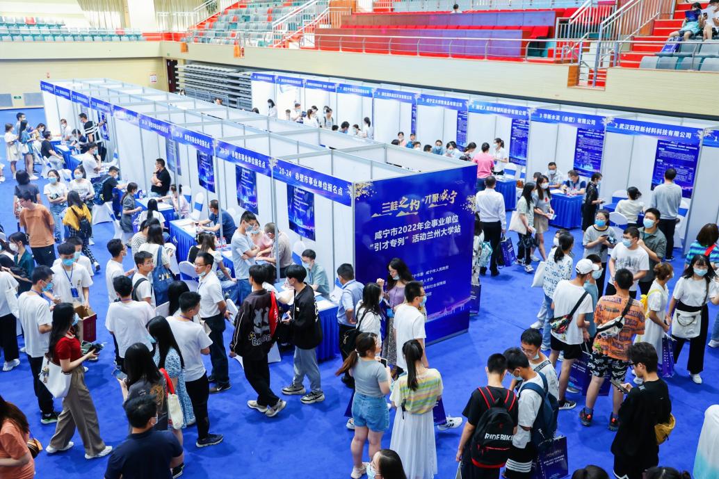 6月29日下午,我市舉辦的2022年“蘭桂之約·才聚咸寧”蘭州大學(xué)專場(chǎng)招聘會(huì)在該校城關(guān)校區(qū)西區(qū)新體育館舉行。