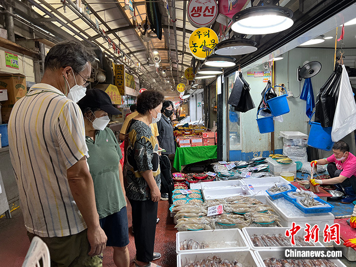 圖為當(dāng)?shù)貢r間7月5日,市民在首爾一家菜市場選購水產(chǎn)品。 中新社記者 劉旭 攝