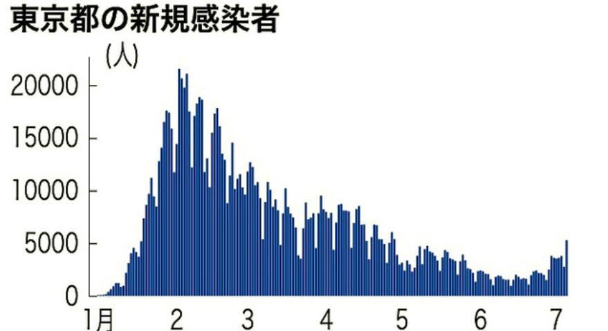 東京都近期的新增確診病例數(shù)變化趨勢圖。(圖片來源:《朝日新聞》)