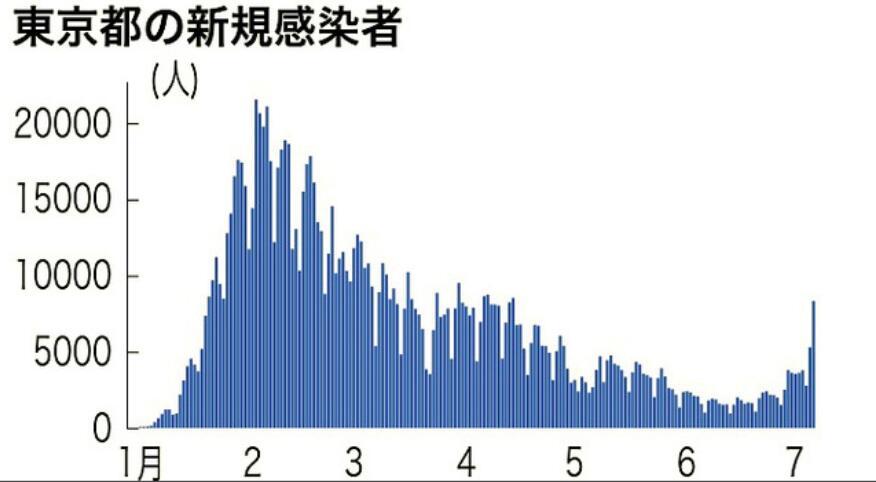 東京都近期的新增確診病例數(shù)變化趨勢(shì)圖。(圖片來(lái)源:《朝日新聞》)