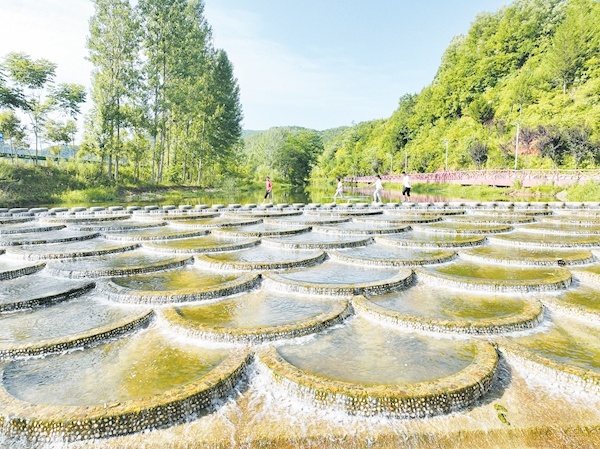 日前,游客在房縣馬尾河化龍堰鎮(zhèn)上灣村段人工蓮花瀑布前的磨盤壩上游玩。近年來,房縣全域?qū)嵤┖恿魉鷳B(tài)修復(fù),提升轄區(qū)314條河流水質(zhì),沿河建設(shè)濕地公園、水體景觀等,吸引游客前來觀光,實(shí)現(xiàn)“水景觀、水生態(tài)、水經(jīng)濟(jì)”有機(jī)融合。