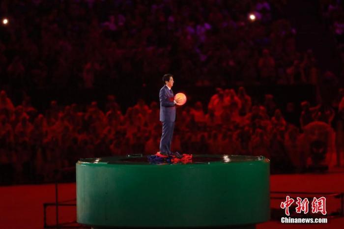 資料圖:2016年里約奧運(yùn)會(huì)閉幕式上,安倍晉三以超級(jí)馬里奧形象出現(xiàn),宣傳2020年?yáng)|京奧運(yùn)會(huì)。中新網(wǎng)記者 盛佳鵬 攝