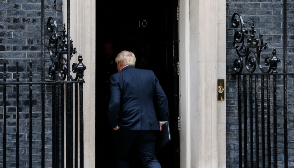 7月7日,英國首相鮑里斯·約翰遜在倫敦唐寧街10號門前發(fā)表講話后返回室內。新華社記者韓巖攝
