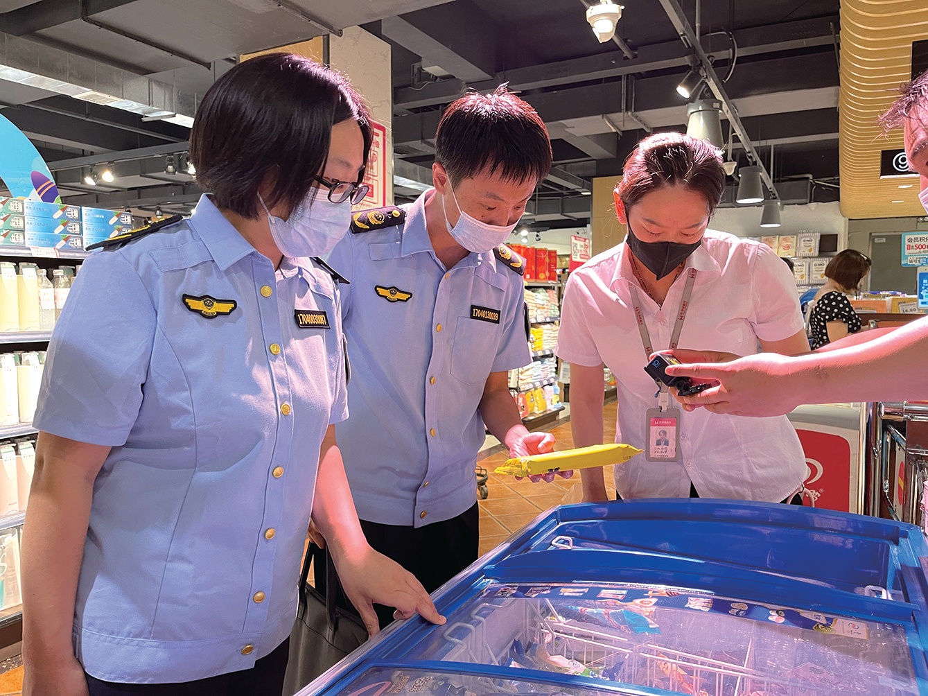執(zhí)法人員對(duì)商超、街邊店雪糕經(jīng)營(yíng)明碼標(biāo)價(jià)行為進(jìn)行排查。